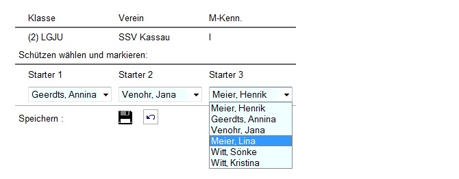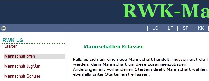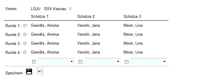 Beim ersten Mannschaftseintrag werden die 3 Starter für alle 4 Rundenwettkämpfe vorgetragen, so dass man nur Änderungen machen muss, falls die Mannschaftszusammenstellung sich ändern sollte.