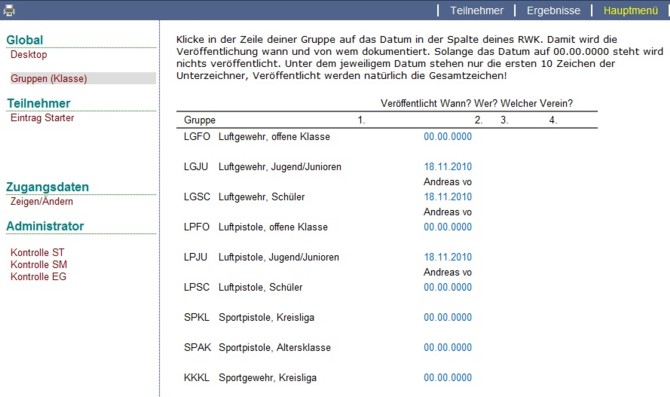 Es werden alle Gruppen gelistet, in der Spalte Nr. 1 sind leere Datumsvorgaben (00.00.0000) klickt in der Reihe eurer Gruppe auf dieses Datum.