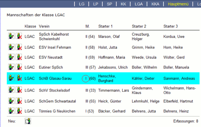 In diesem Beispiel ist die Mannschaft von Glasau-Sarau eigentlich die dritte. Diese Mannschaft zum Ändern öffnen indem auf das kleine grüne Männchen mit dem Bleistift geklickt wird, es öffnet sich die Mannschaft im Änderungsmodus.