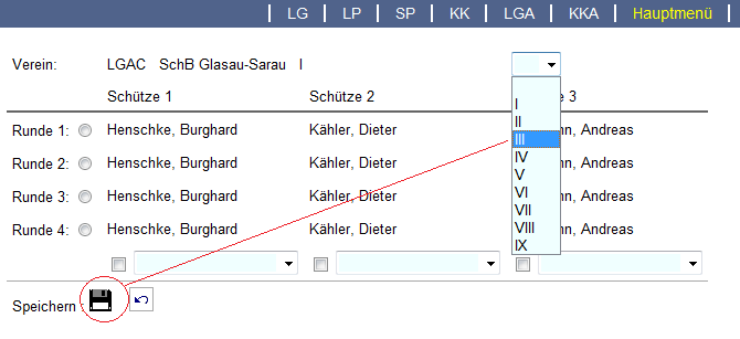 Aus dem Klappfenster die „Mannschafts-Nr.“ wählen und dann auf Speichern.